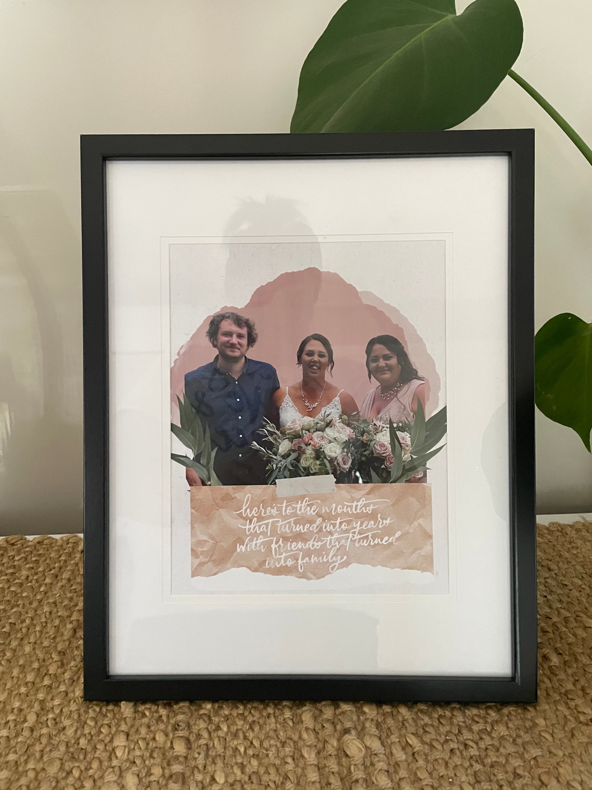Each piece begins with your cherished photograph, reimagined with a soft watercolour background, hand-lettered wording in either ink or digital, and carefully chosen flora to bring everything together. Every artwork is entirely custom and uniquely designed, meaning no two pieces will ever be the same (unless you choose to order duplicates).